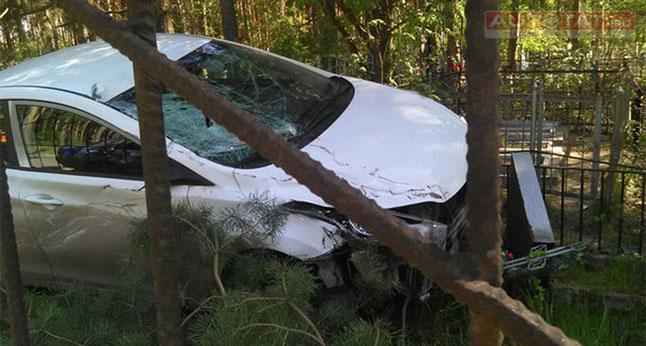 По предварительной информации, владелец иномарки не справился с управлением, сбил человека и вылетел с дороги прямо на могилы. При этом машина снесла несколько надгробных камней.