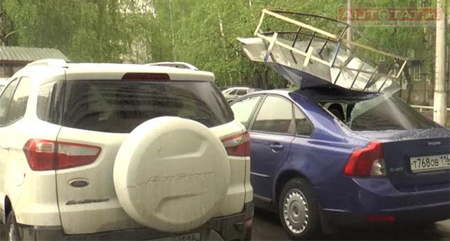 На улице Серова в Казани металлическая конструкция рухнула на припаркованные у подъезда автомобили. По словам местных жителей всему виной не только сильный ветер, сколько халатность рабочих.