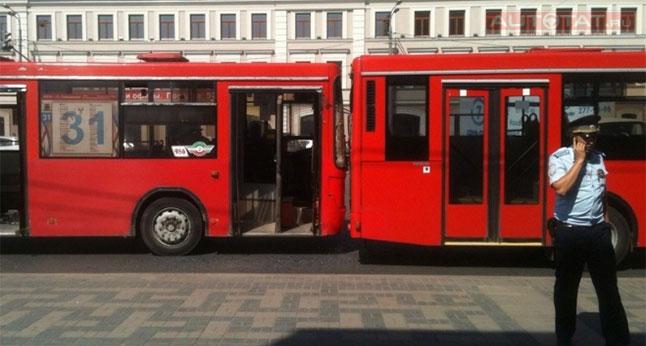 На улице Декабристов в Казани столкнулись два красных автобуса. В результате ДТП пострадала 75-летняя пассажирка, передает пресс-служба ГИБДД.