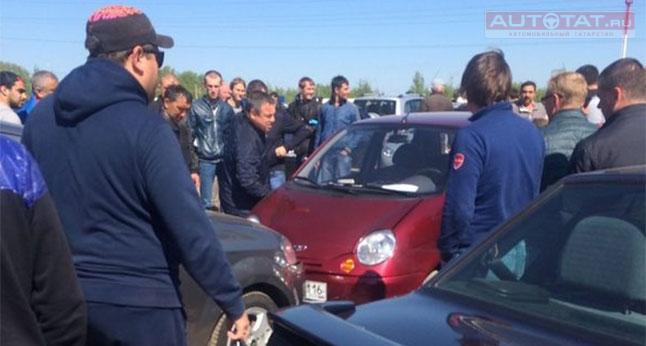 Курьезное ДТП в Казани: автоледи протаранила на авторынке два атвомобиля. ФОТО
