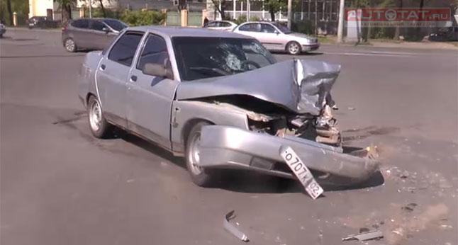 В Казани пьяный водитель без водительского удостоверения устроил крупное ДТП на ул. Ершова, а затем попытался скрыться, но был задержан случайным экипажем ГИБДД.