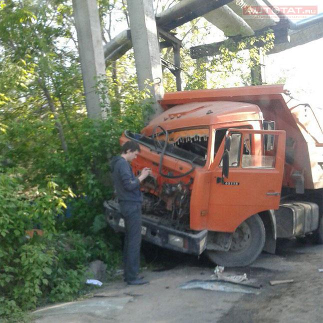 В Казани КамАЗ врезался в столб. Пострадали два человека.
