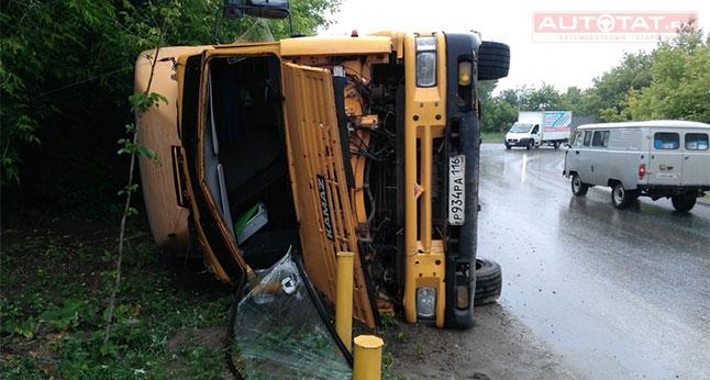 В Казани груженый КамАЗ не вписался в поворот и перевернулся