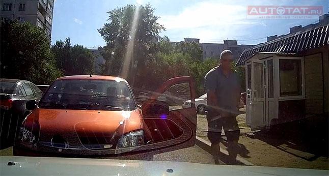 На ролике с видеорегистратора видно, как мужчины не поделили дорогу. Водитель иномарки вышел поговорить с владельцем LADA Granta, чем вывел его из себя. В результате, разгневанный казанец выскочил из машины и охотничьим ножом пробил переднее колесо автомобилю с видеорегистратором.