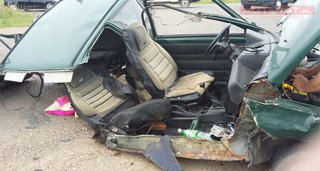 В Татарстане автомобиль ОКА разорвало пополам после ДТП с автобусом. ФОТО