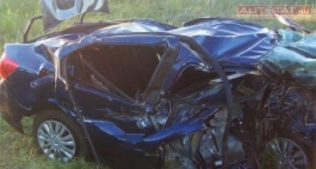 Иномарка на трассе Татарстана врезалась в КамАЗ, погибла девушка. ФОТО