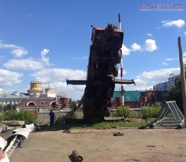 К счастью, водитель успел вовремя выпрыгнуть из кабины и никто не пострадал. Необычный инцидент произошел на рабочей площадке возле здания физфака.