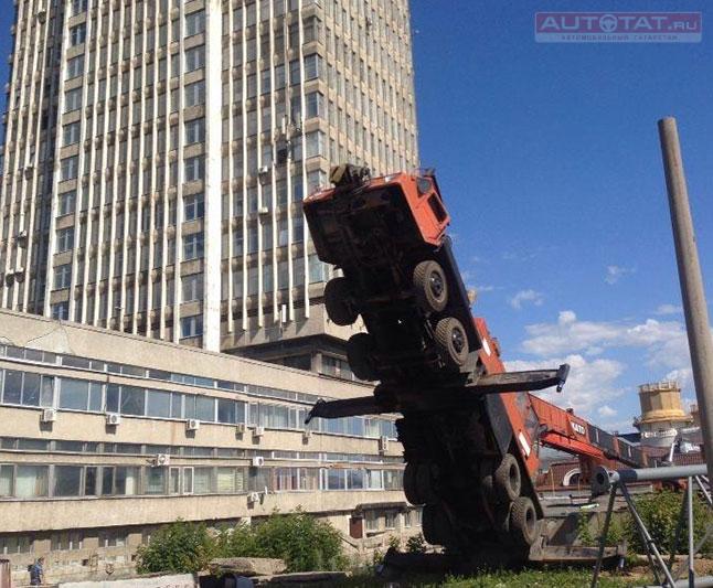 Сегодня около здания КФУ упал 100-тонный строительный кран. По предварительной информации, произошел перевес из-за неправильной его фиксации.