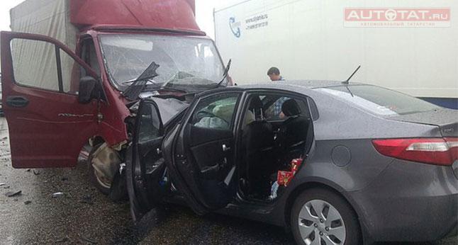 Серьезное ДТП произошло в минувшую субботу в Мамадышском районе Татарстана. На 956 км трассы М-7 лоб в лоб столкнулась Газель и KIA Rio. Об этом сообщают “Челнинские известия”.