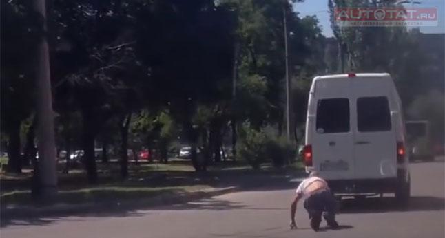 Отметим, что после ДТП “пешеход-терминатор” устроил разборки с водителем микроавтобуса, а после отправился в больницу, где у него диагностировали всего лишь ушиб мягких тканей!