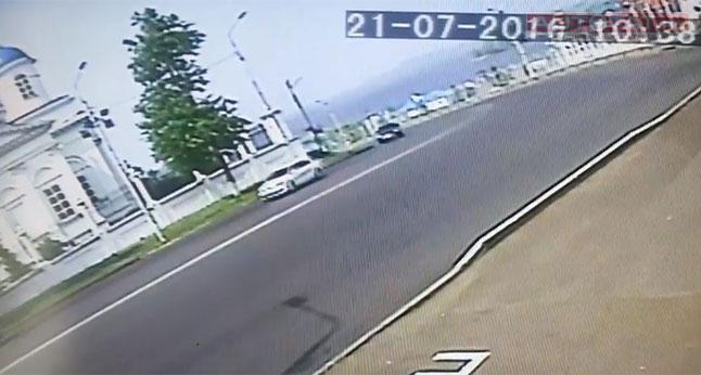 На кадрах видеозаписи видно, как иномарка выехала на встречную полос движения и протаранила забор набережной. Если верить дате на камере, то инцидент случился сегодня, 21 июля в 10:38.