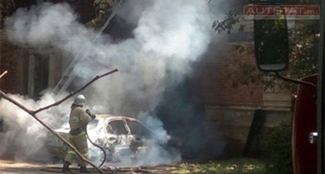 В Казани огонь перекинулся с горящей иномарки на жилой дом.