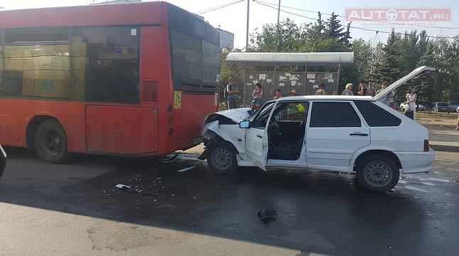 Крупное ДТП в Казани: столкнулись три авто и автобус