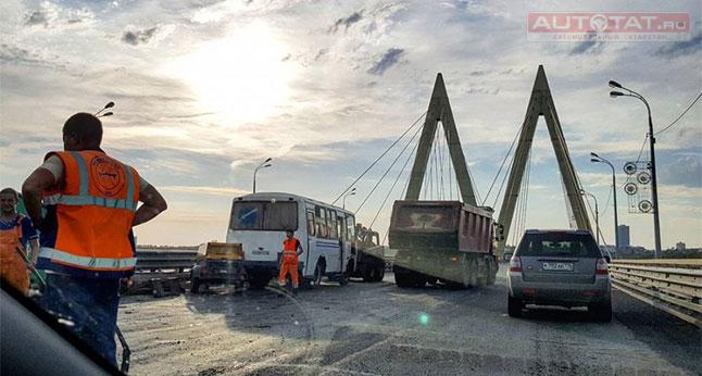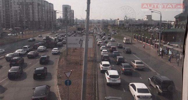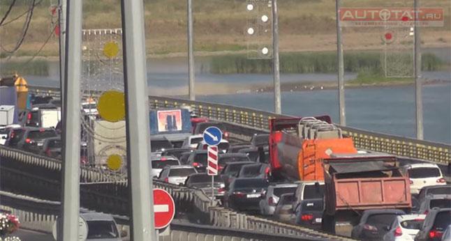 В Казани на мосту Миллениум встало движение из-за ДТП