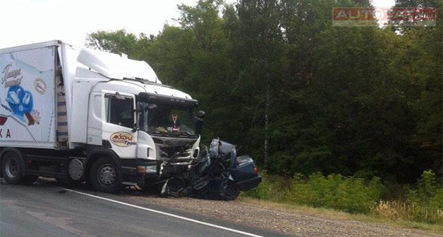 По словам очевидцев, автомобиль Volvo вылетел на встречную полосу движения, где столкнулся с грузовиком Scania. Удар получился настолько сильным, что легковушку буквально смяло в гармошку.