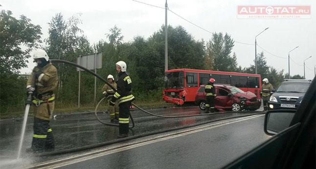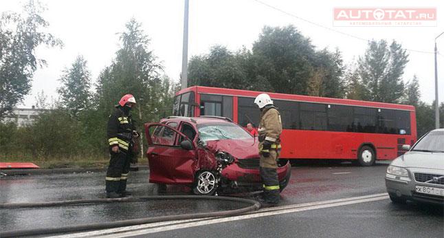 В Казани возле авторынка автобус столкнулся с легковушкой. ФОТО