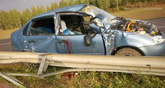В Татарстане водитель LADA Kalina врезался в отбойник и погиб. ФОТО