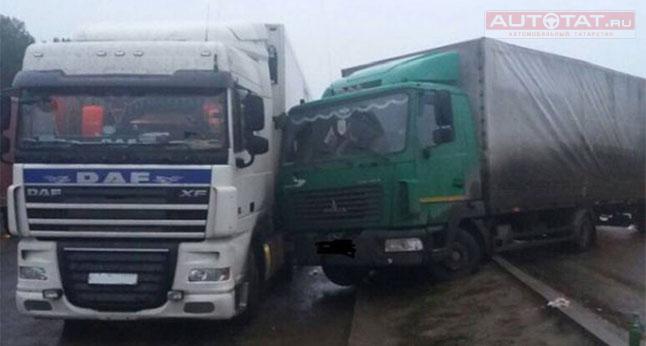 В Мамадышском районе Татарстана произошло ДТП по вине дальнобойщика, который заснул за рулем. В результате столкнулись три большегруза, сообщает “Казанский репортер”.