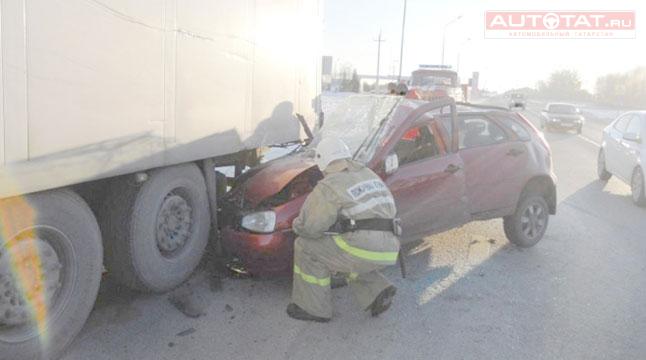 В РТ при столкновении "Калины" и грузовика пострадали 2 человека