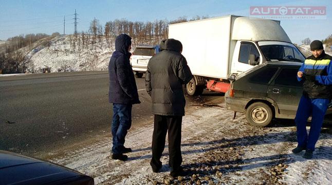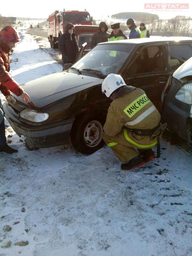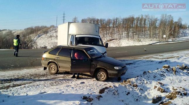 На трассе в Татарстане столкнулись Газель и ВАЗ-2114. Есть пострадавший. ФОТО