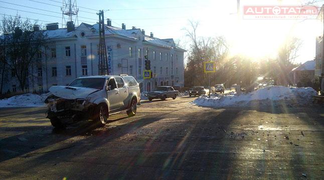Вчера на перекрестке ул. Гафиатуллина и ул. Красноармейская произошло столкновение скорой помощи и автомобиля Toyota. От удара “скорую” отбросило на 21-летнего пешехода, пишут “Бугульминская газета”.