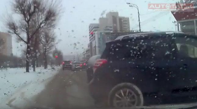На кадрах видеозаписи видно, как автор ролика движется в сторону Кремлевской дамбы по пр. Ибрагимова, когда навстречу ему медленно едет внедорожник. Инцидент произошел 6 декабря 2016 года, судя по данным видеорегистратора.