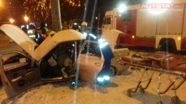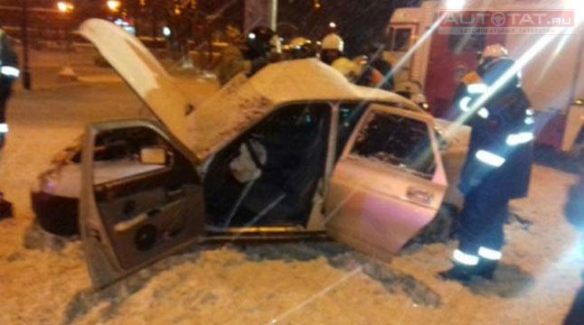 В Казани пьяный водитель с тремя пассажирами врезался в столб