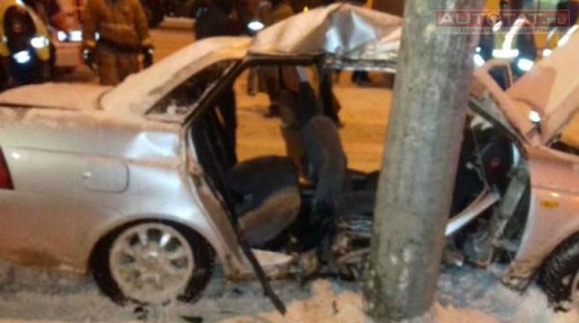 По предварительной информации, водитель “Приоры” не выбрал безопасную скорость напротив дома №80 по ул. Ершова, не справился с управлением и врезался в столб.