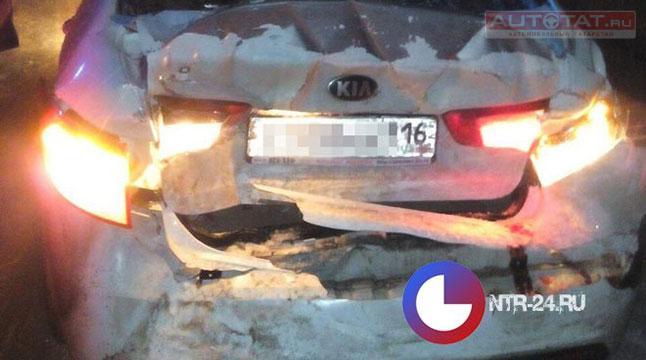 От удара рейсовый автобус, следовавший по маршруту Казань-Джалиль, врезался в KIA Rio, а грузовик выехал на встречную полосу движения, где по касательной задел Hyundai-6709G2.