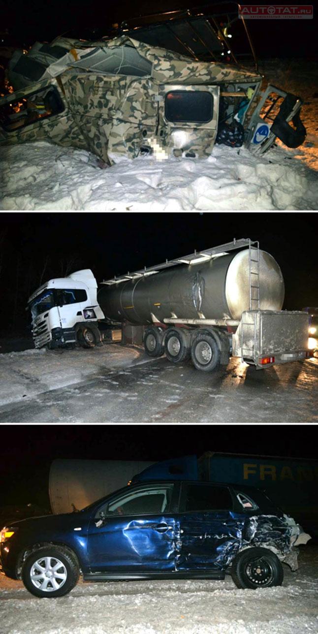 В результате столкновения четырех машин погибла семья из Татарстана. ФОТО
