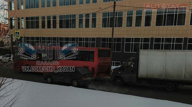 В Казани грузовик врезался в полный пассажирами автобус