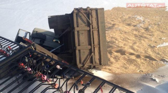 На место происшествия прибыла спецтехника. К счастью, водитель грузовика не пострадал. Причины ДТП выясняются.