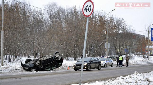 В Казани Land Rover перевернулся на крышу в результате ДТП