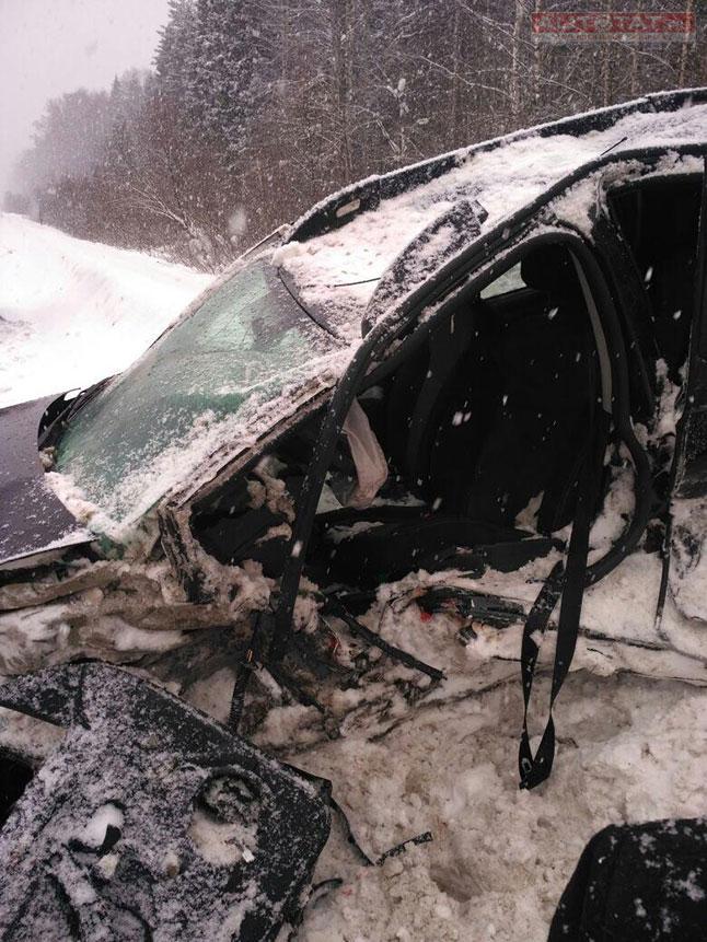 В результате ДТП 53-летний водитель “Дастера” скончался на месте происшествия, а его пассажирку доставили в больницу с ушибом грудной клетки и ног.