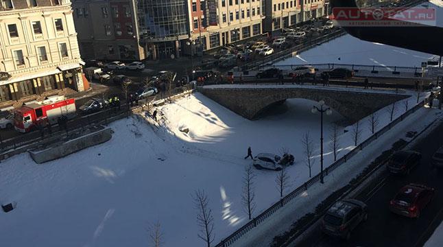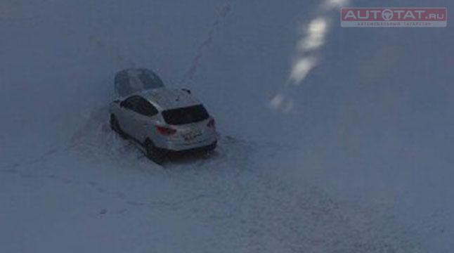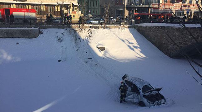Сегодня, 31 января, на перекрестке улиц Тази Гиззата и Правобулачной столкнулись два автомобиля. В результате Hyundai ix35 упал в протоку реки Булак.