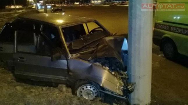 В Казани водитель на ВАЗ-2114 врезался в столб. ФОТО