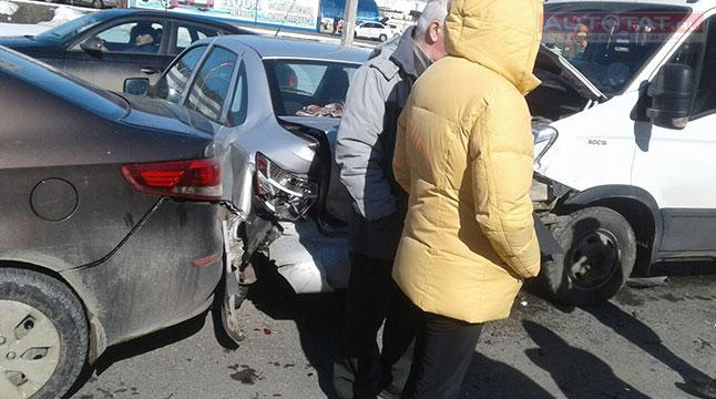 По предварительной информации, на улице Столичная столкнулись сразу пять автомобилей - LADA Granta, Kia Rio, LADA Priora, KIA Picanto и микроавтобус “ИВЕКО”.