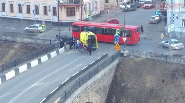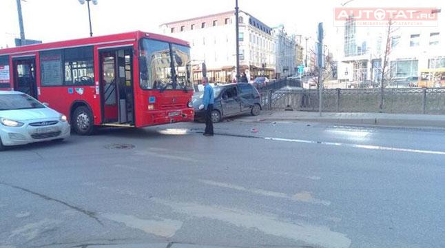 В центре Казани столкнулся автобус и иномарка. ФОТО