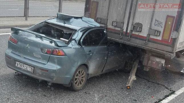 В Кировском районе Казани легковушка врезалась в прицеп грузовой фуры. ФОТО