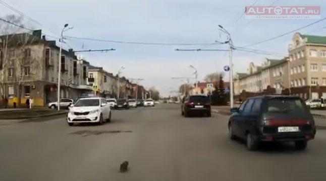 В Татарстане подросток спас котенка, выбежавшего на дорогу. ВИДЕО