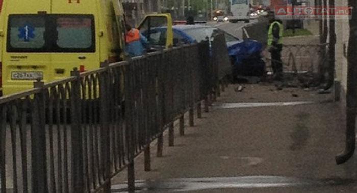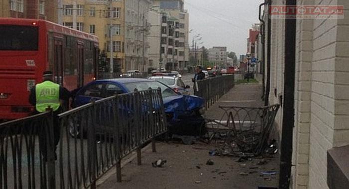 Автобус врезался в автомобиль, столкнувшийся с ограждением в Казани. ФОТО