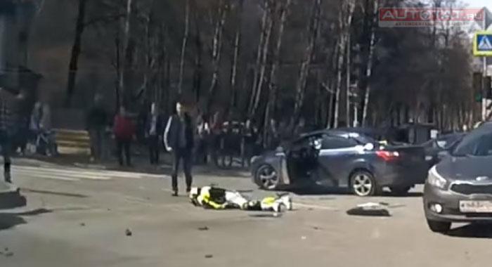 Мотоциклист проскочил на желтый и разбился. ВИДЕО