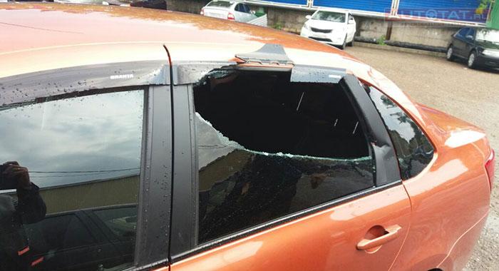 По словам местных жителей, ненастье началось неожиданно и сопровождалось сильным ливнем с градом и порывистым ветром. От падения различных предметов у некоторых автомобилей оказались разбиты стекла и помят кузов.