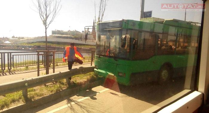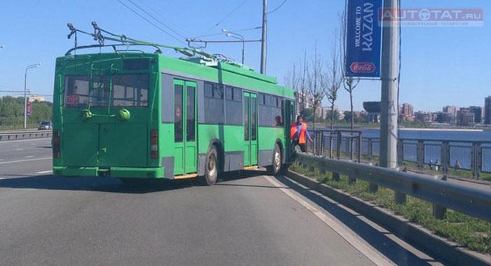 Сегодня утром на Кремлевской дамбе троллейбус врезался в отбойник. Авария произошла ориентировочно в 8:45, сообщает “Казань24”.