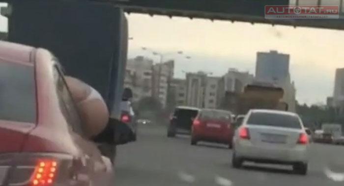 В Казани девушка высунула попу из машины во время движения. ВИДЕО