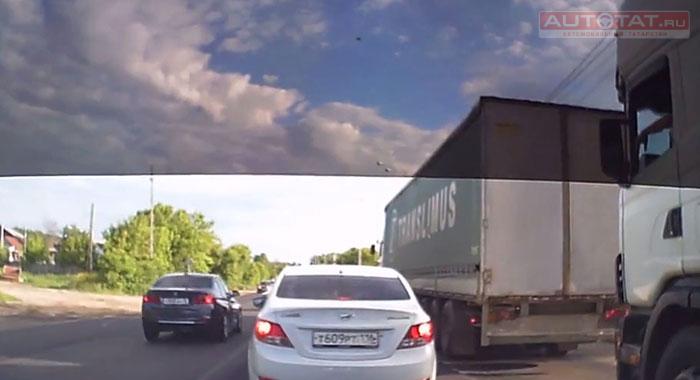 Вчера в Казани на Сибирском тракте произошло столкновение двух иномарок. В соц. сетях появилась видео момента ДТП.