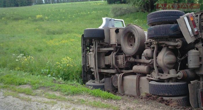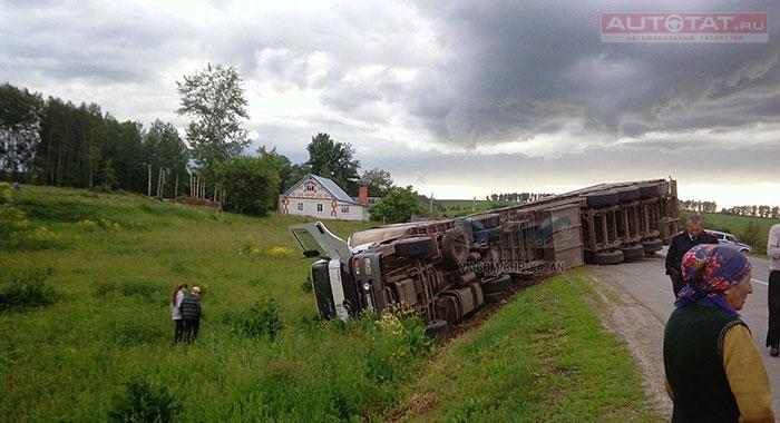 В Балтасинском районе Татарстана вчера перевернулась груженая фура Mercedes. Об этом сообщают пользователи в соц. сетях.