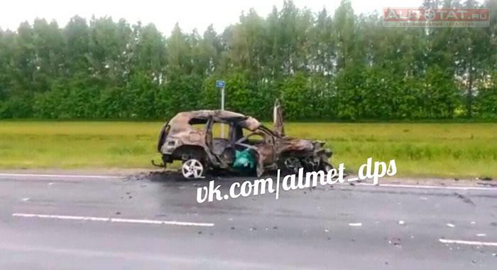 По предварительной информации, дорожно-транспортное происшествие случилось на трассе Чистополь-Альметьевск недалеко от села Уракчи. Из-за сильного удара полностью сгорел автомобиль Рено.
