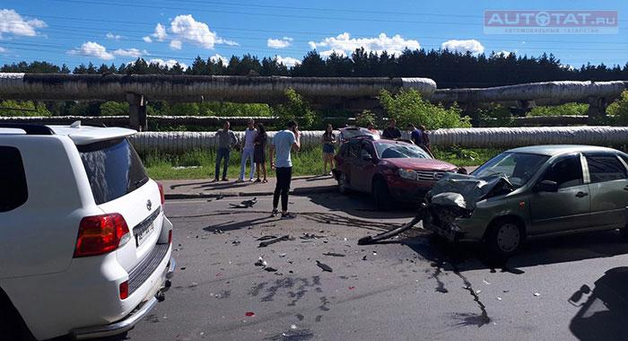 По информации в соц. сетях, авария случилась на повороте с ул. Хлебзаводская. Все автомобили раскидало по проезжей части, один из них улетел в кусты.