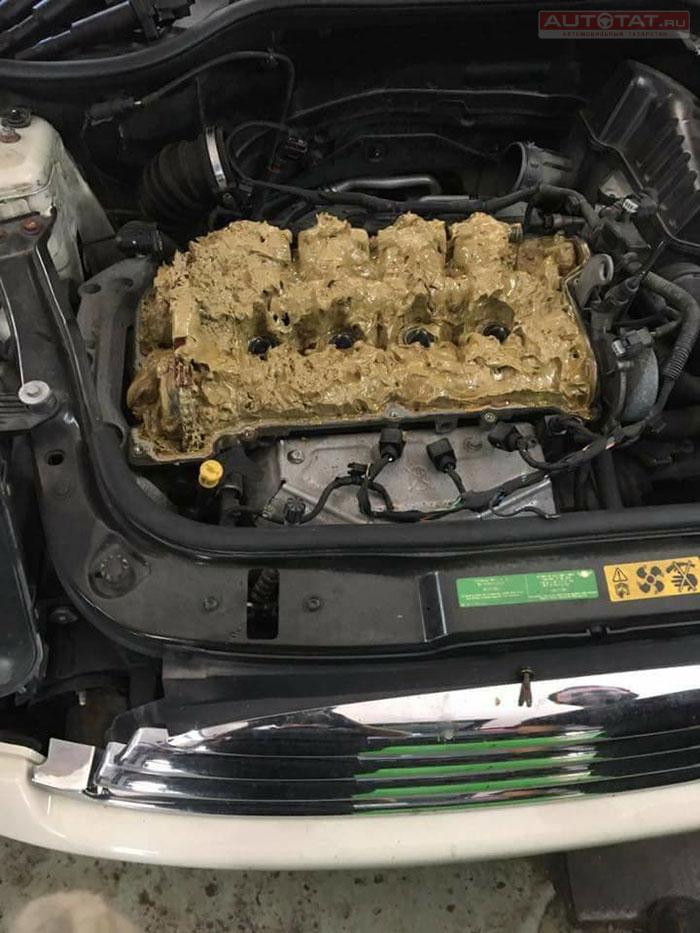Девушка случайно залила в двигатель «омывайку» вместо масла. ФОТО